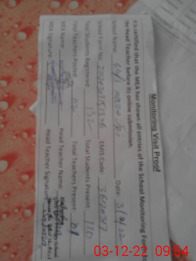 | Attendance Register | Head Teacher | MEA with School | Visit Proof |