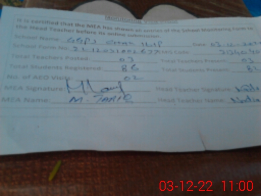 | Name: Uz**** Mu**** Designation: (School Headmaster's/Headmistress's) PST Phone/Cell Number: 03**** |