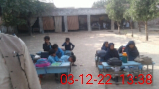 | Total no. of Classrooms: 2 No. of Classrooms Used for Teaching: 0 No. of Classrooms Storing Old Furniture, FTBs, etc: 0Comments if Any: Complete building of the school is dangerous and boundary wall of the school is partially dangerous |