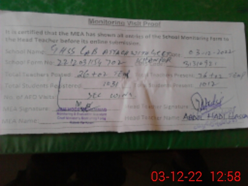 | Attendance Register | Head Teacher | MEA with School | Visit Proof |