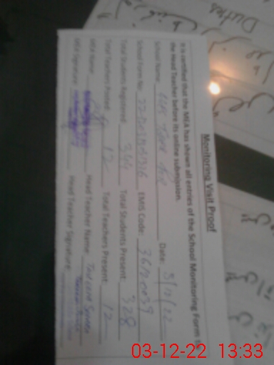 | Certified that this School was Inspected by the Undersigned MEA/DMO Today and the Information Stated Above is as Per Record. | |||||