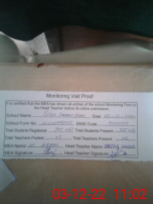 | Certified that this School was Inspected by the Undersigned MEA/DMO Today and the Information Stated Above is as Per Record. | |||||