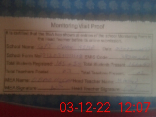 | Attendance Register | Head Teacher | MEA with School | Visit Proof |