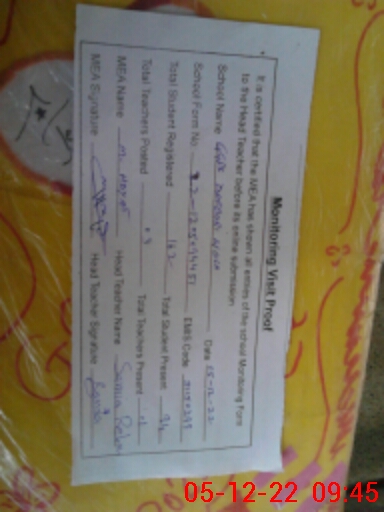 | Certified that this School was Inspected by the Undersigned MEA/DMO Today and the Information Stated Above is as Per Record. | |||||