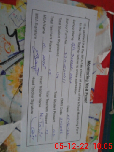 | Certified that this School was Inspected by the Undersigned MEA/DMO Today and the Information Stated Above is as Per Record. | |||||