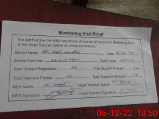 | Certified that this School was Inspected by the Undersigned MEA/DMO Today and the Information Stated Above is as Per Record. | |||||