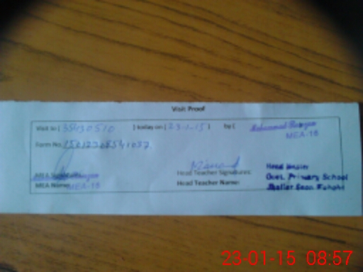 | Attendance Register | Head Teacher | MEA with School | Visit Proof |