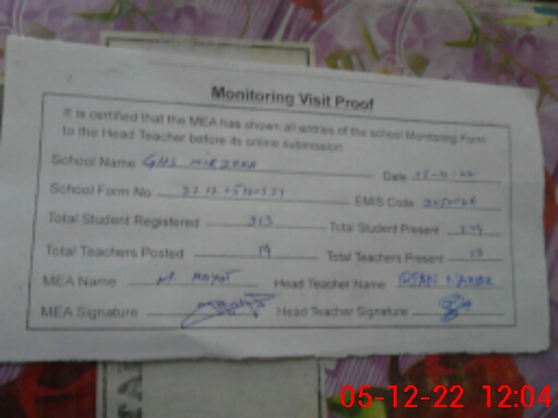 | EMIS Code: 31150026 | Name of School: GHS MIRZEKA | |||