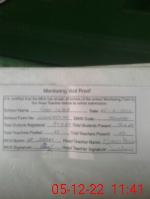 | Attendance Register | Head Teacher | MEA with School | Visit Proof |