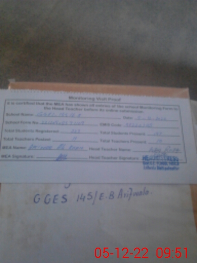 | EMIS Code: 39220288 | Name of School: GGES 145 EB | |||