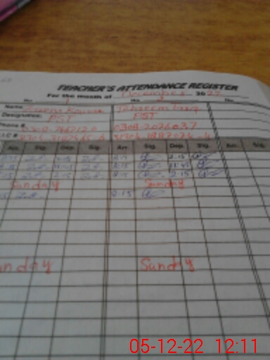 | Attendance Register | Head Teacher | MEA with School | Visit Proof |