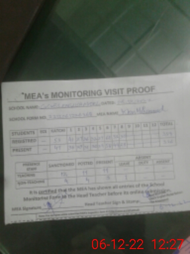| Certified that this School was Inspected by the Undersigned MEA/DMO Today and the Information Stated Above is as Per Record. | |||||