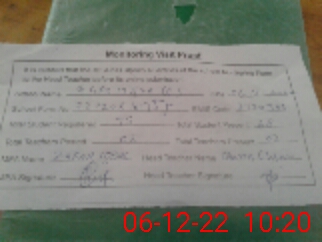 | Attendance Register | Head Teacher | MEA with School | Visit Proof |