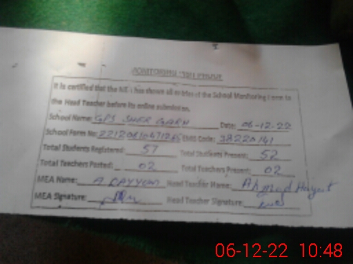 | EMIS Code: 38220141 | Name of School: GPS SHER GARH | |||