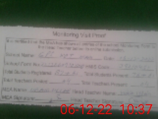 | Attendance Register | Head Teacher | MEA with School | Visit Proof |