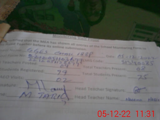 | Attendance Register | Head Teacher | MEA with School | Visit Proof |