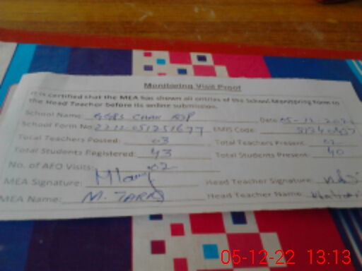| School Visited by School Health & Nutrition Supervisor (No. of Visits) | 3 | Name1: | M Shahid | Name2: | M Shahid |