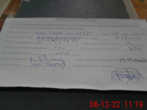 | EMIS Code: 31340010 | Name of School: GHS CHAK 186/P | |||