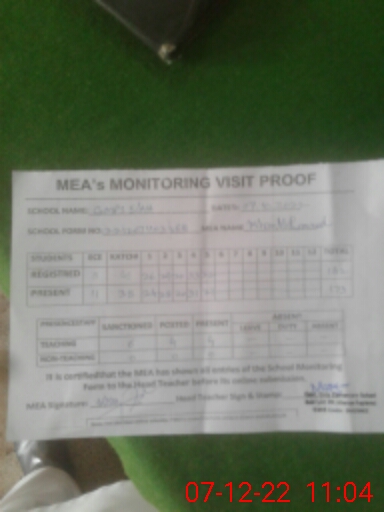 | Certified that this School was Inspected by the Undersigned MEA/DMO Today and the Information Stated Above is as Per Record. | |||||