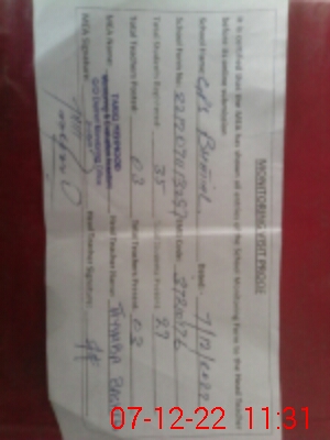 | Certified that this School was Inspected by the Undersigned MEA/DMO Today and the Information Stated Above is as Per Record. | |||||