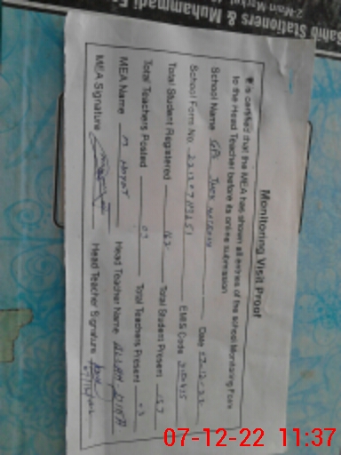 | Certified that this School was Inspected by the Undersigned MEA/DMO Today and the Information Stated Above is as Per Record. | |||||