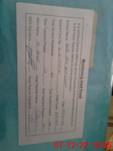 | Certified that this School was Inspected by the Undersigned MEA/DMO Today and the Information Stated Above is as Per Record. | |||||