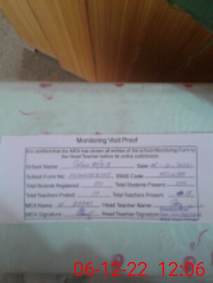 | Certified that this School was Inspected by the Undersigned MEA/DMO Today and the Information Stated Above is as Per Record. | |||||