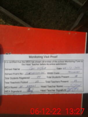 | Attendance Register | Head Teacher | MEA with School | Visit Proof |