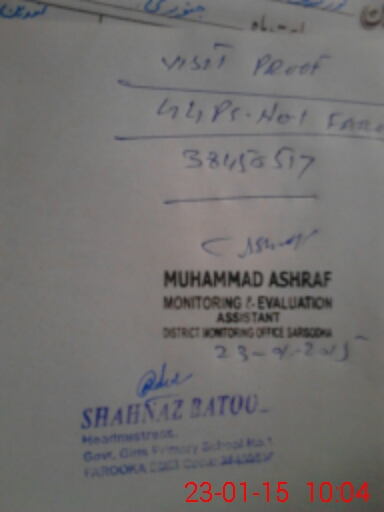 | EMIS Code: 38450517 | Name of School: GGPS NO.1 FAROOKA | |||