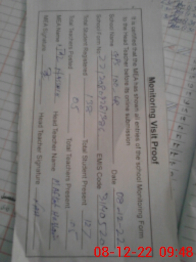 | Certified that this School was Inspected by the Undersigned MEA/DMO Today and the Information Stated Above is as Per Record. | |||||