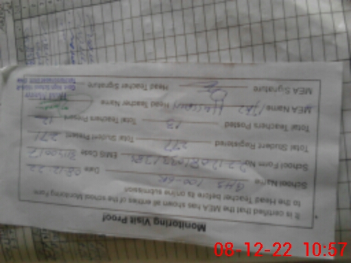 | Certified that this School was Inspected by the Undersigned MEA/DMO Today and the Information Stated Above is as Per Record. | |||||