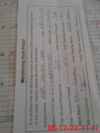 | Certified that this School was Inspected by the Undersigned MEA/DMO Today and the Information Stated Above is as Per Record. | |||||