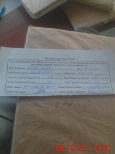| Certified that this School was Inspected by the Undersigned MEA/DMO Today and the Information Stated Above is as Per Record. | |||||
