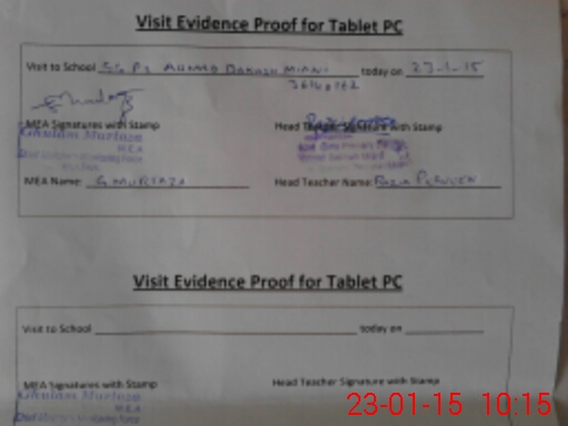 | Attendance Register | Head Teacher | MEA with School | Visit Proof |