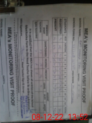 | Certified that this School was Inspected by the Undersigned MEA/DMO Today and the Information Stated Above is as Per Record. | |||||