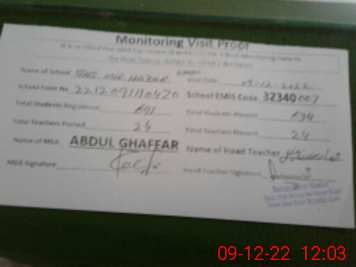 | EMIS Code: 32340007 | Name of School: GHS MIR HAZAR KHAN | |||