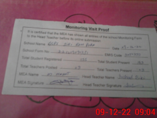 | Certified that this School was Inspected by the Undersigned MEA/DMO Today and the Information Stated Above is as Per Record. | |||||