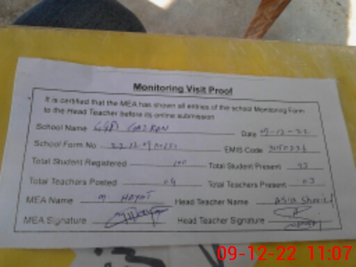 | EMIS Code: 31150236 | Name of School: GGPS GAZRAN | |||