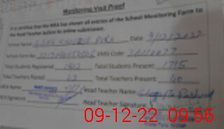 | Attendance Register | Head Teacher | MEA with School | Visit Proof |
