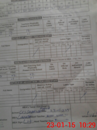 | Attendance Register | Head Teacher | MEA with School | Visit Proof |