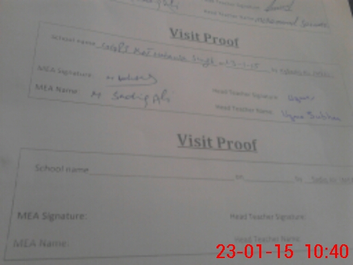 | Attendance Register | Head Teacher | MEA with School | Visit Proof |