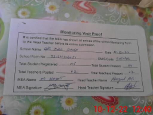 | Certified that this School was Inspected by the Undersigned MEA/DMO Today and the Information Stated Above is as Per Record. | |||||