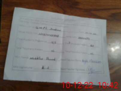 | Attendance Register | Head Teacher | MEA with School | Visit Proof |