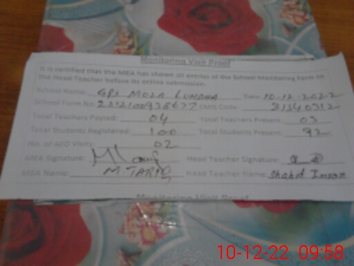 | EMIS Code: 31340312 | Name of School: GPS MOZA LUNDAH | |||