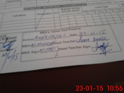 | Attendance Register | Head Teacher | MEA with School | Visit Proof |