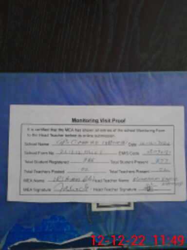 | Certified that this School was Inspected by the Undersigned MEA/DMO Today and the Information Stated Above is as Per Record. | |||||