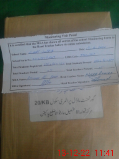 | EMIS Code: 39220347 | Name of School: GMPS CHAK NO. 20 KB | |||
