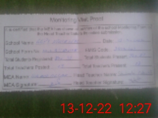 | Attendance Register | Head Teacher | MEA with School | Visit Proof |
