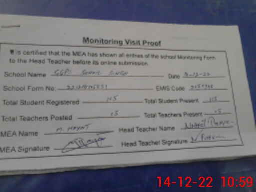 | EMIS Code: 31150340 | Name of School: GGPS SOHAIL SINGH | |||