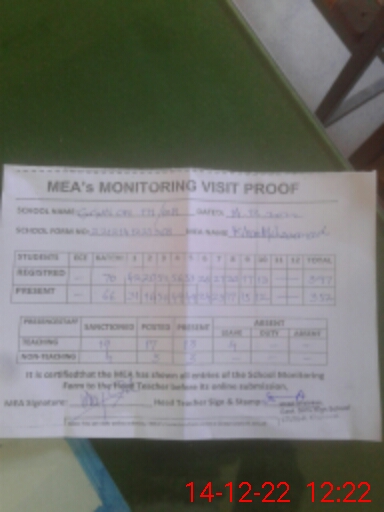 | Attendance Register | Head Teacher | MEA with School | Visit Proof |